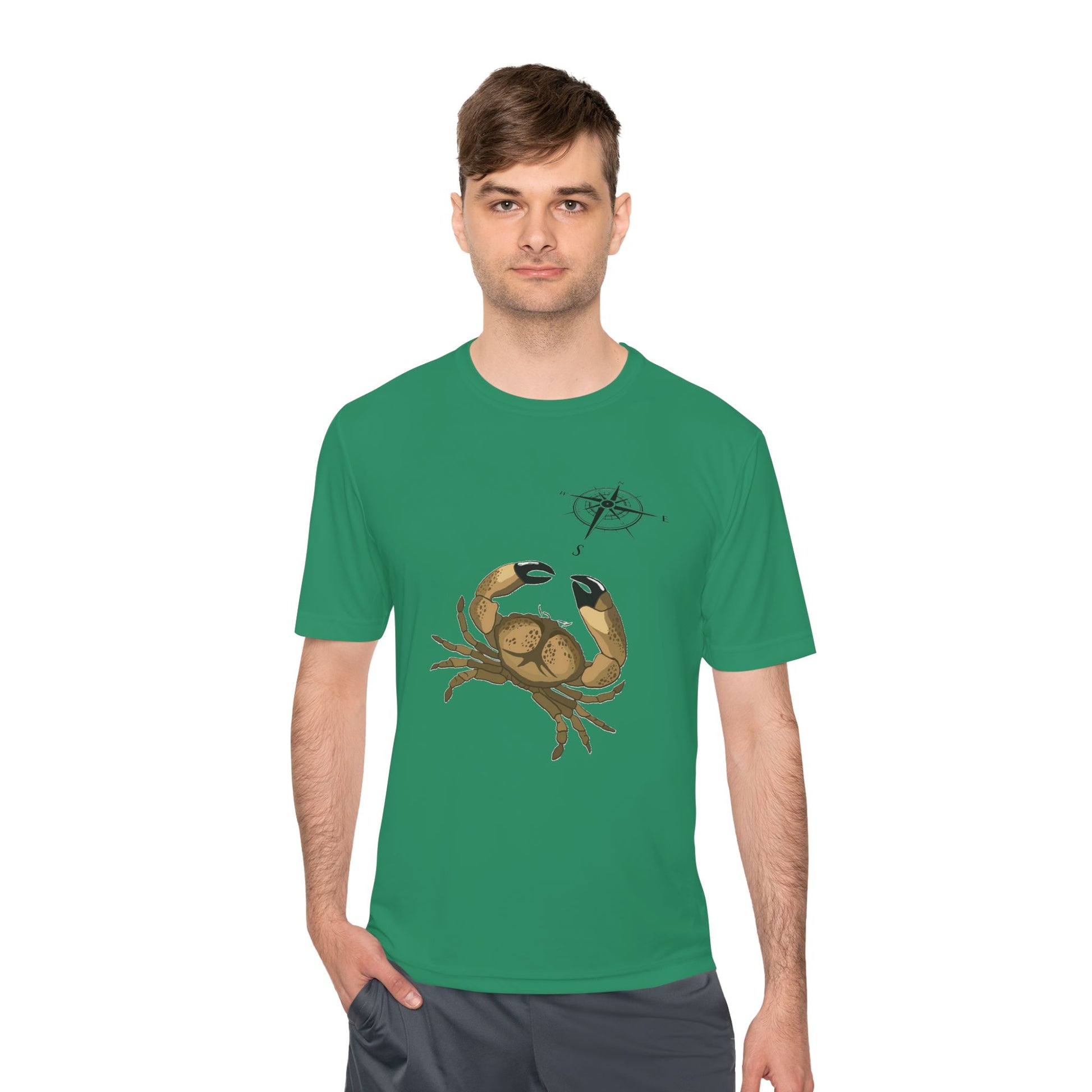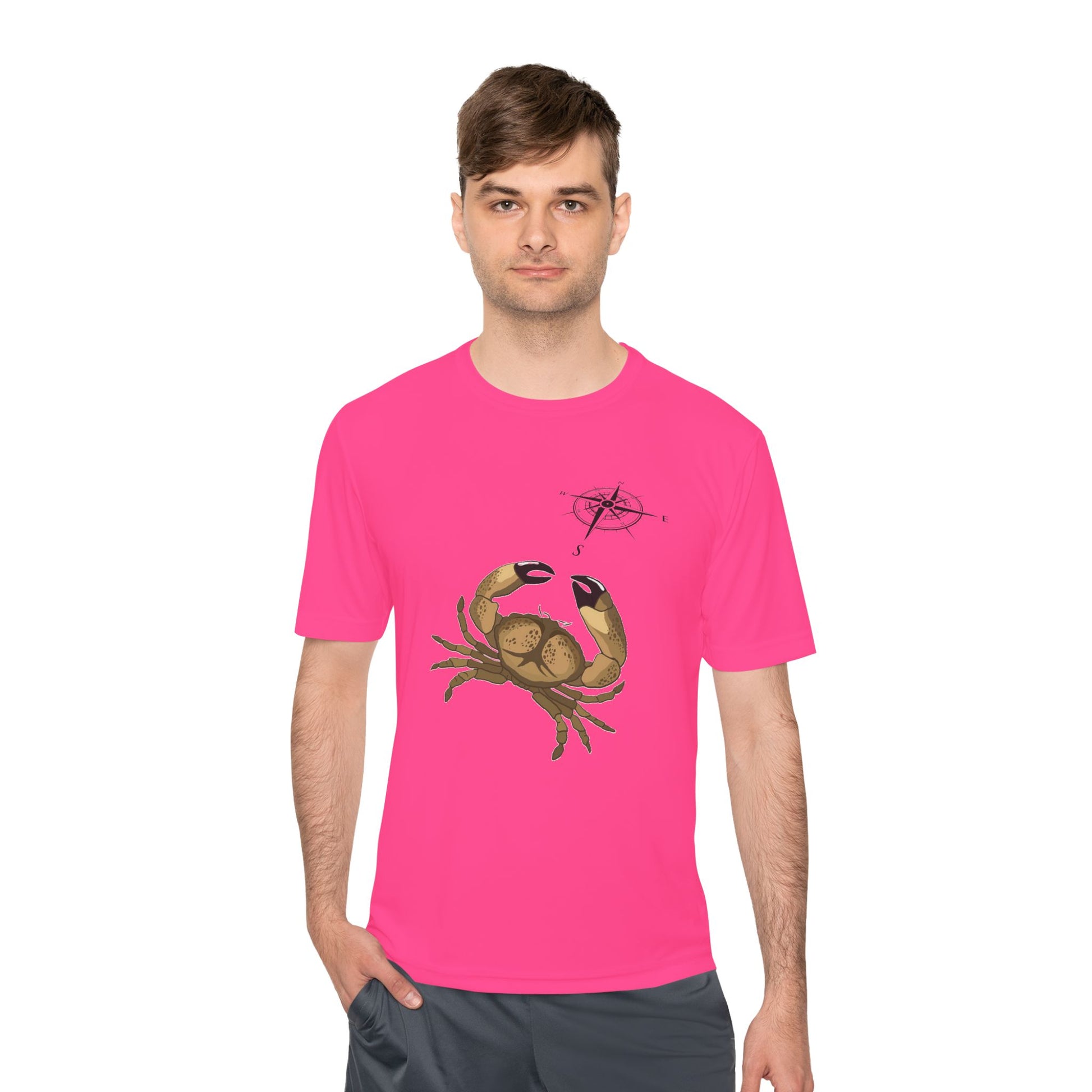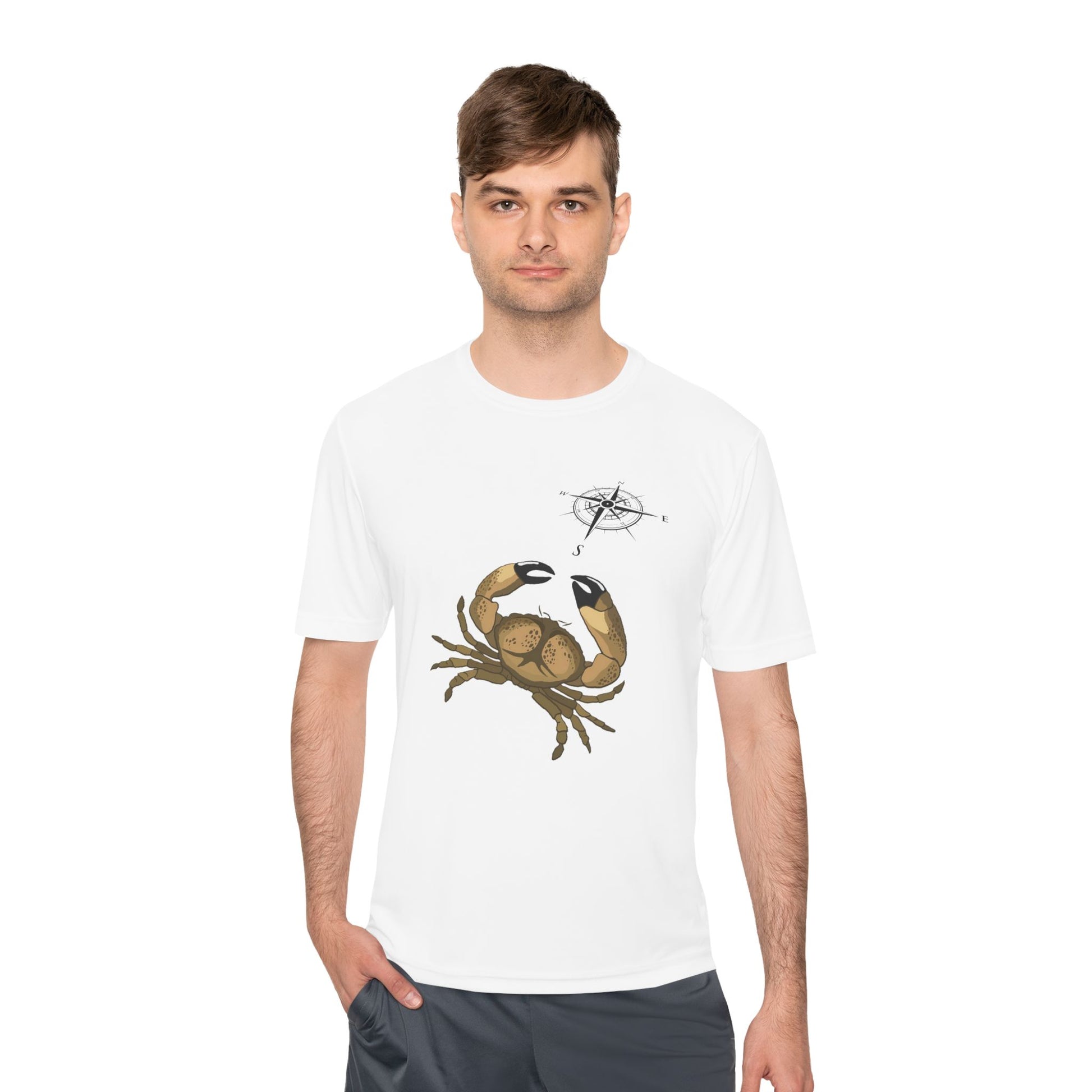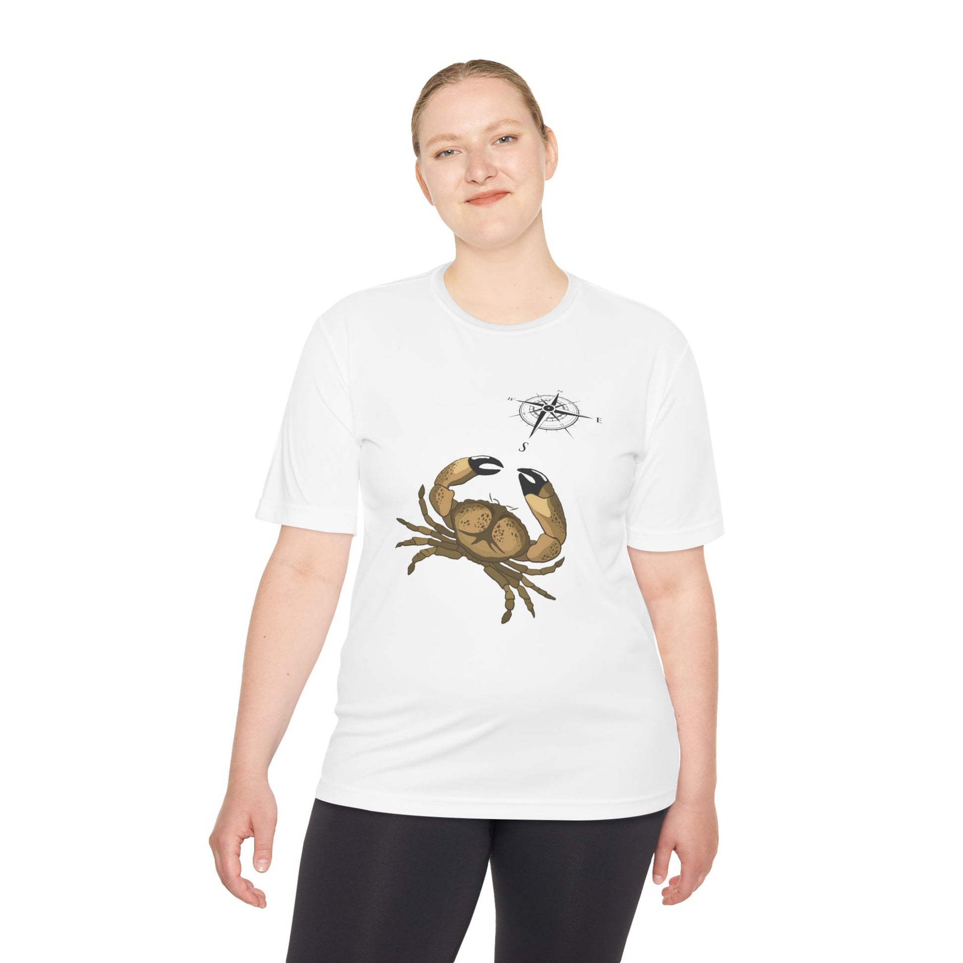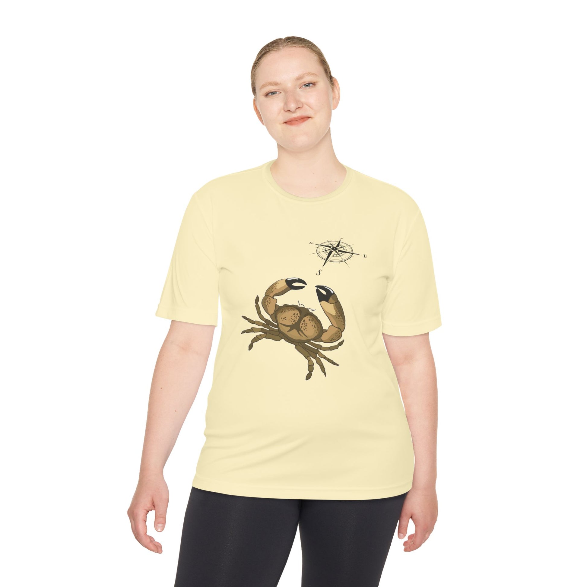 Coastal Adventure Unisex Moisture Wicking Tee - Crab & Fish Design
