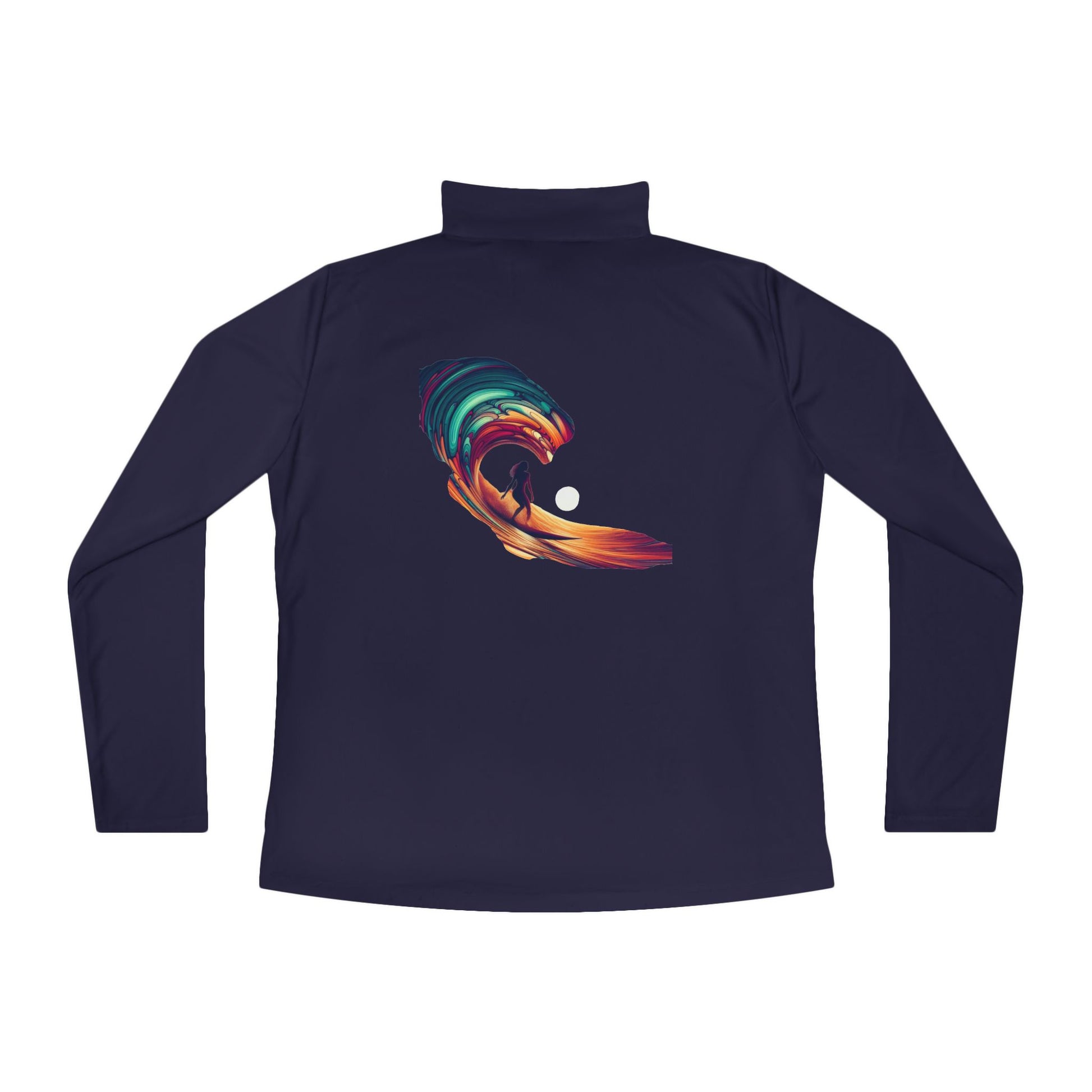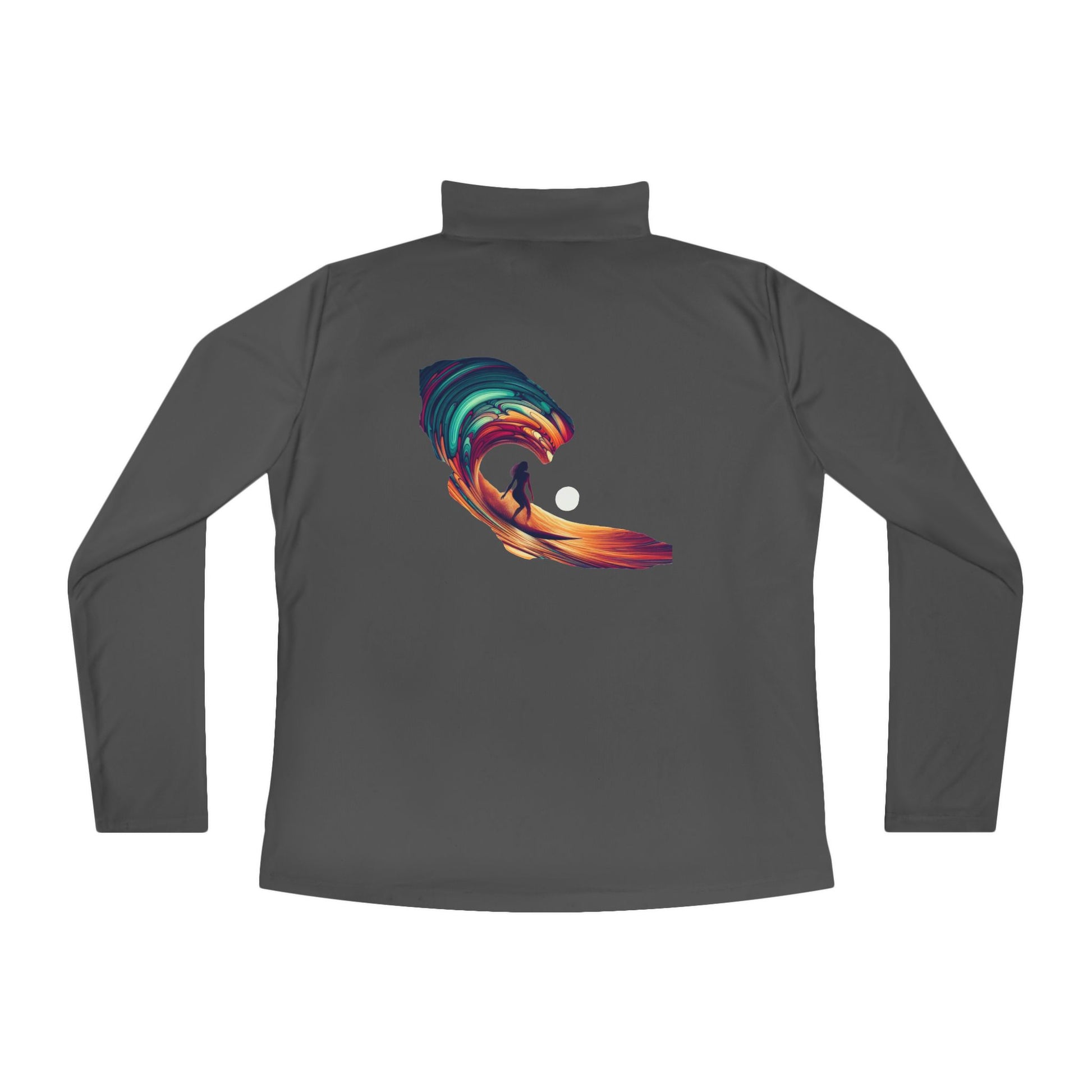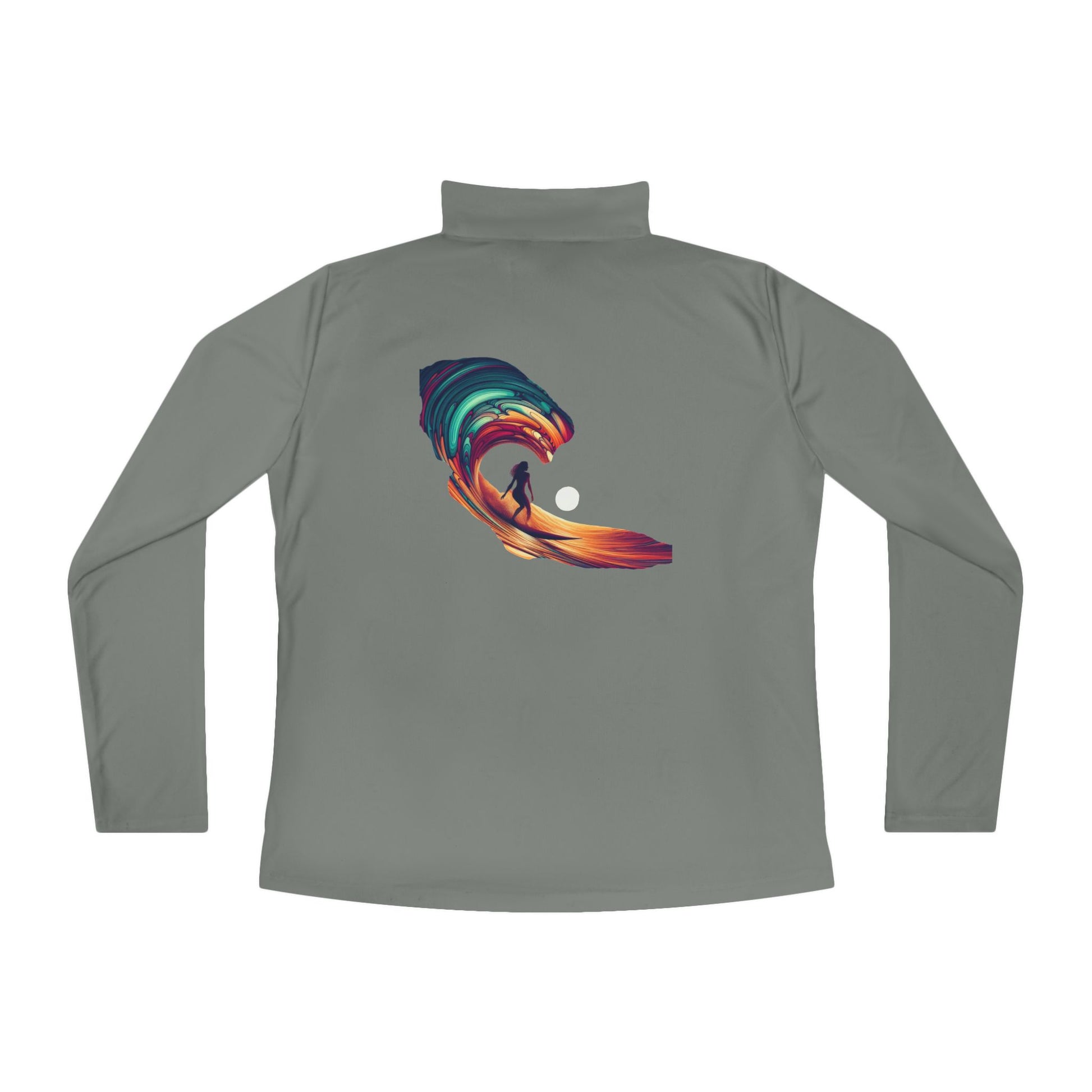 Ladies Quarter-Zip Pullover with Surf Wave Design - Perfect for Activewear & Casual Outings
