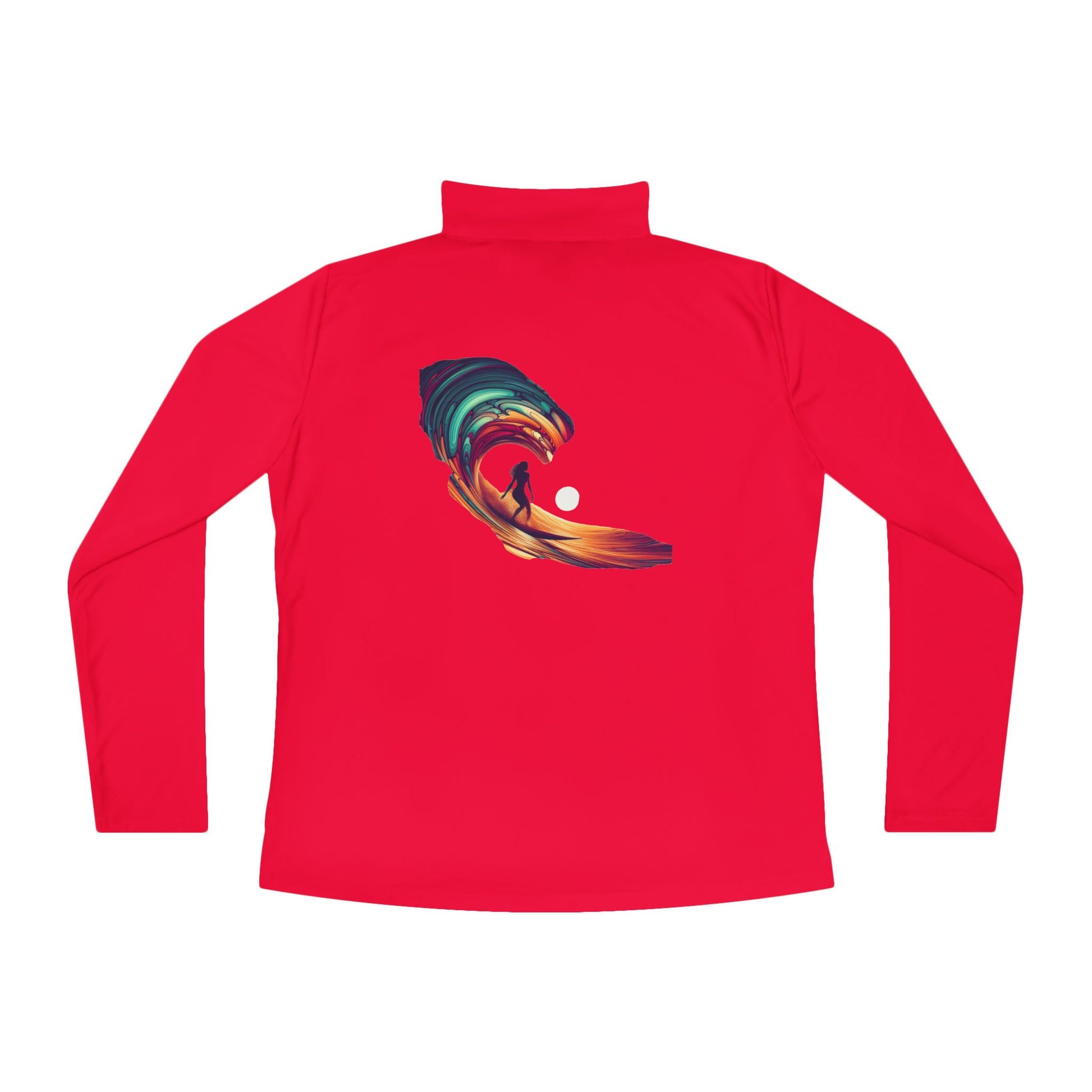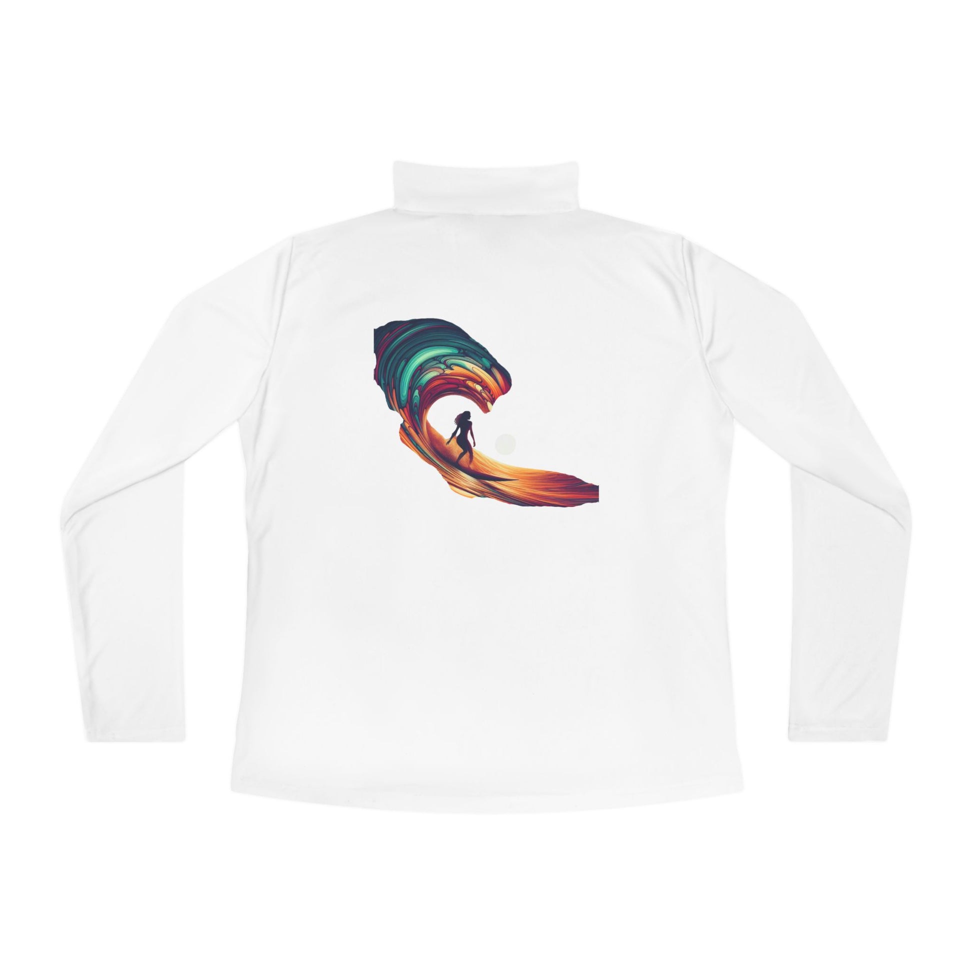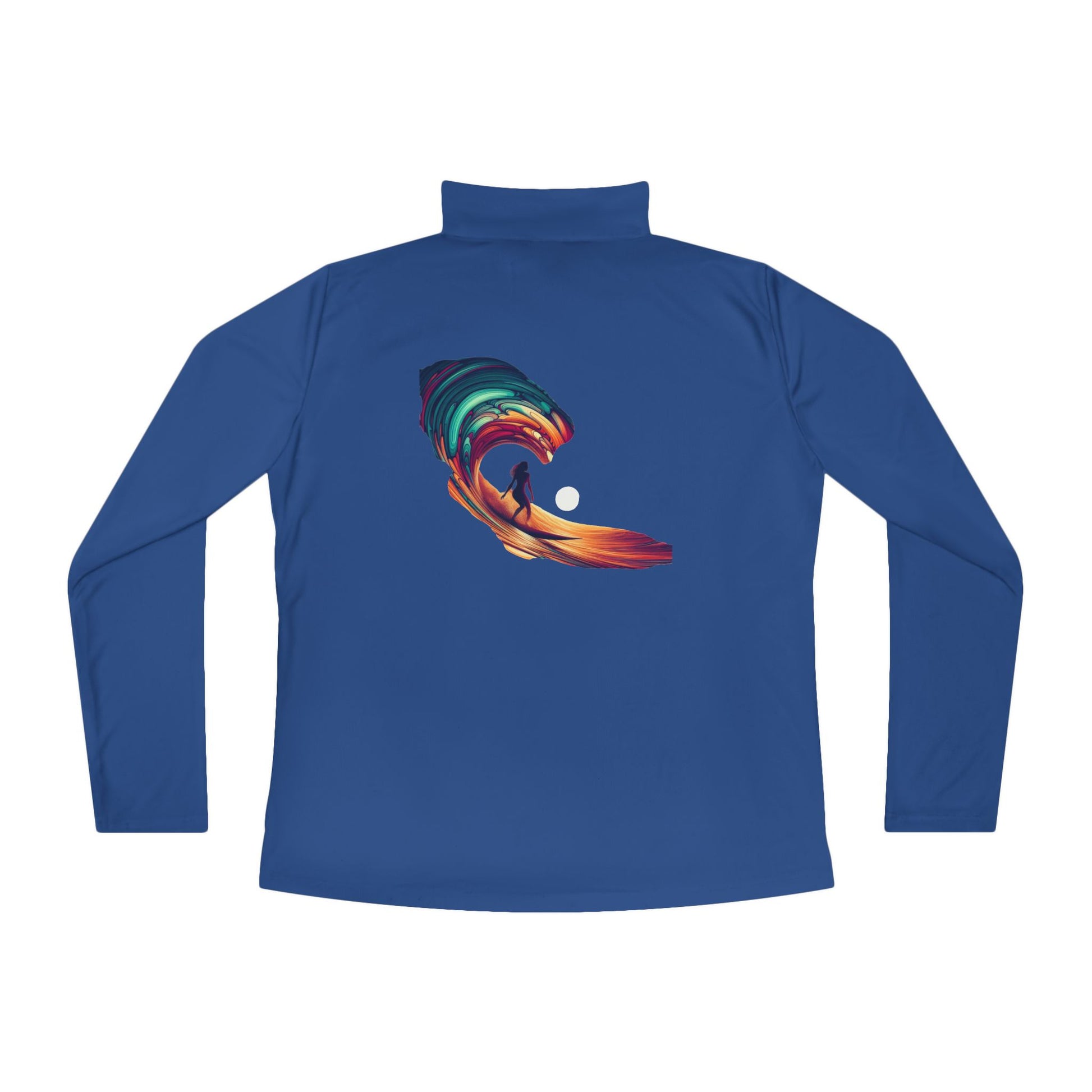 Ladies Quarter-Zip Pullover with Surf Wave Design - Perfect for Activewear & Casual Outings