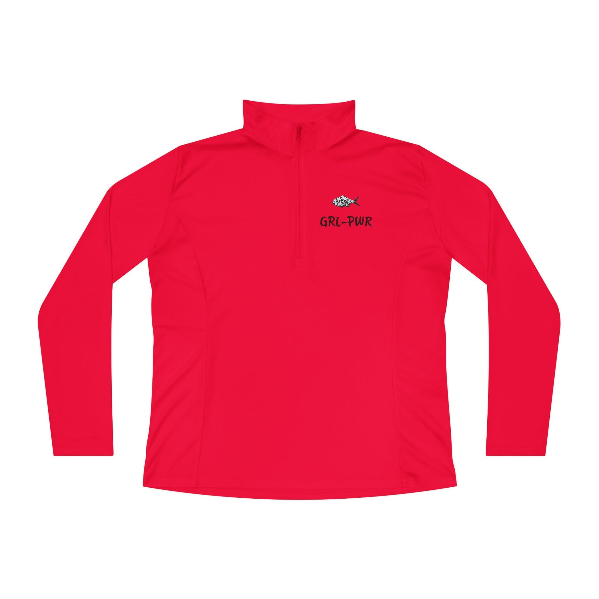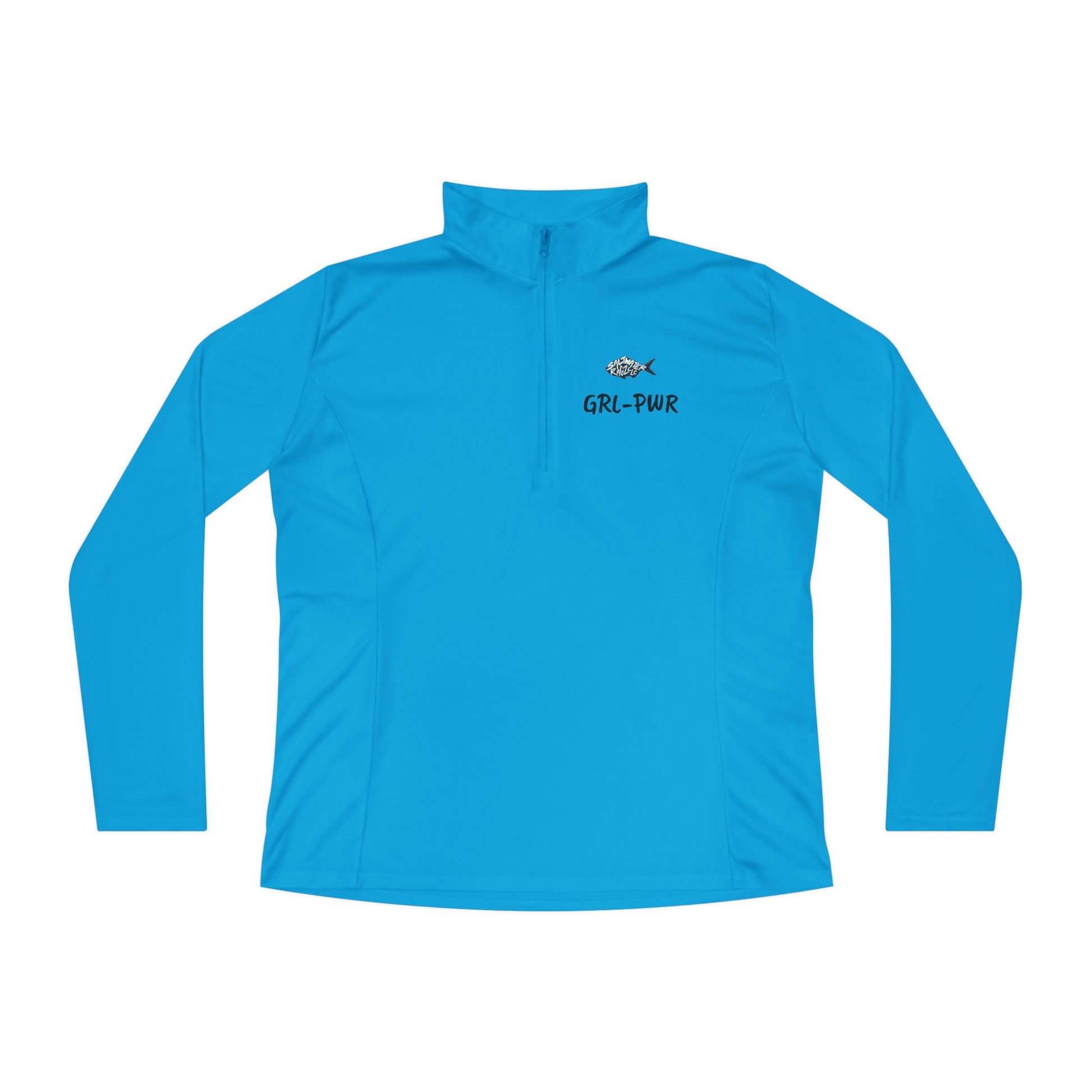 Stay stylish and comfortable with our Ladies Quarter-Zip Pullover. Perfect for active women, this pullover combines function and fashion. The eye-catching design on the back adds a touch of flair, making it ideal for casual outings or workouts. Crafted with an athletic fit, this pullover feels lightweight and breathable, keeping you cool during physical activities. It's an essential piece for fitness enthusiasts, beach lovers, or anyone who enjoys an active lifestyle. Whether you're hitting the gym, enjoying a brisk walk on a chilly day, or relaxing by the seaside, this pullover will keep you looking chic. Also great for occasions like Thanksgiving, Christmas, or gifts for sporty friends.
