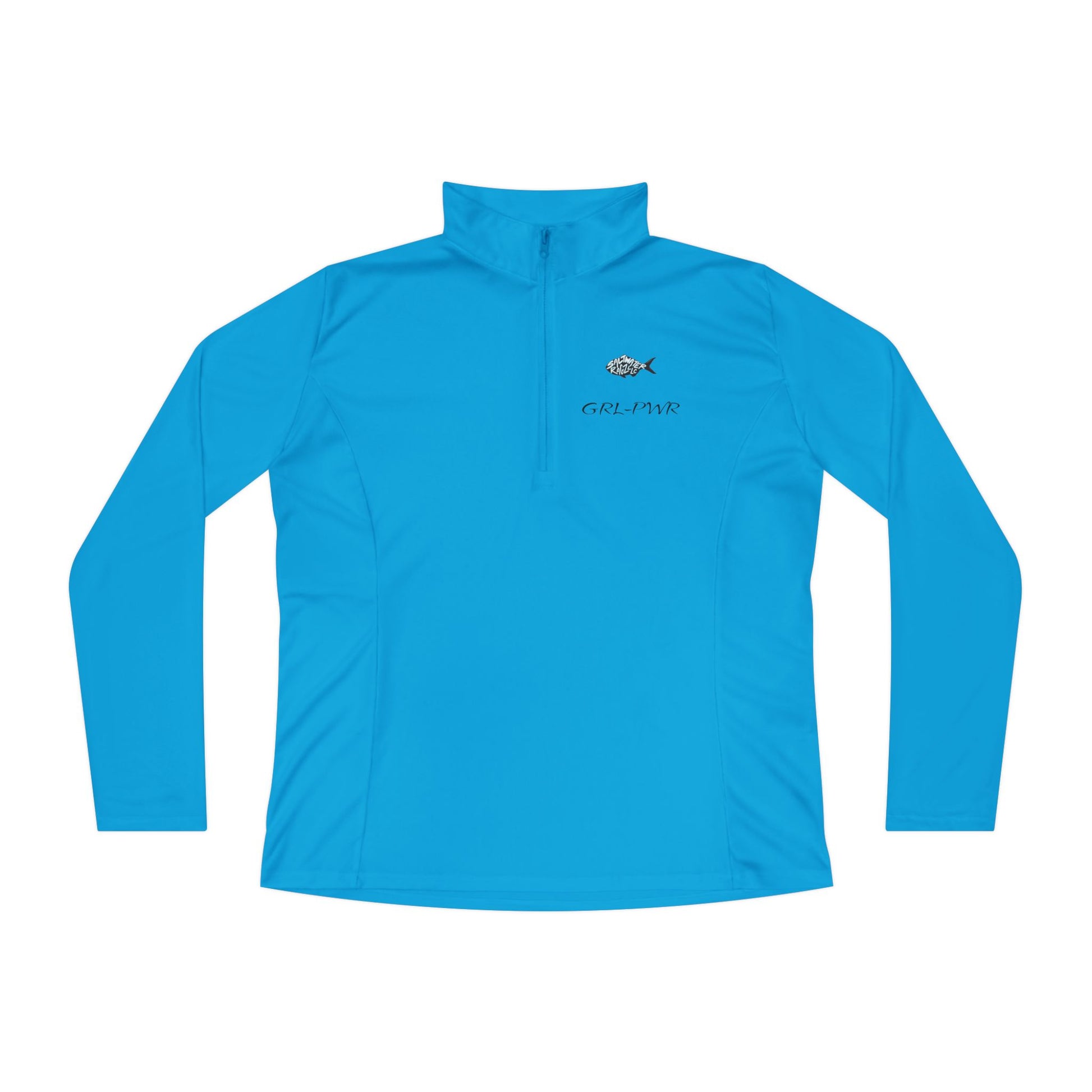 Ladies Quarter-Zip Pullover with Surfing Wave Design - Perfect for Beach Lovers and Outdoor Adventurers