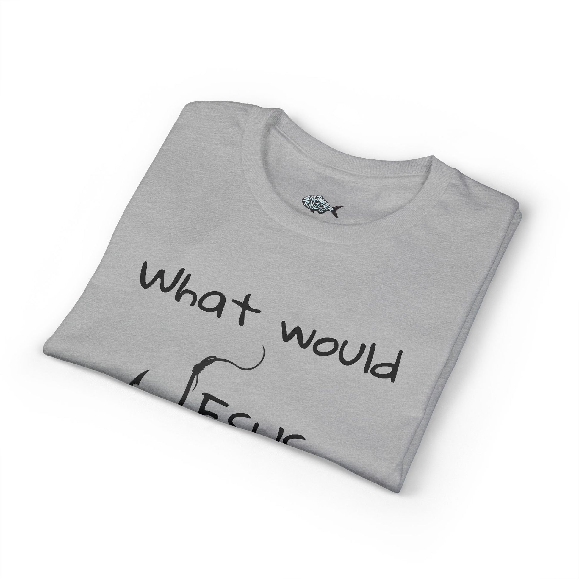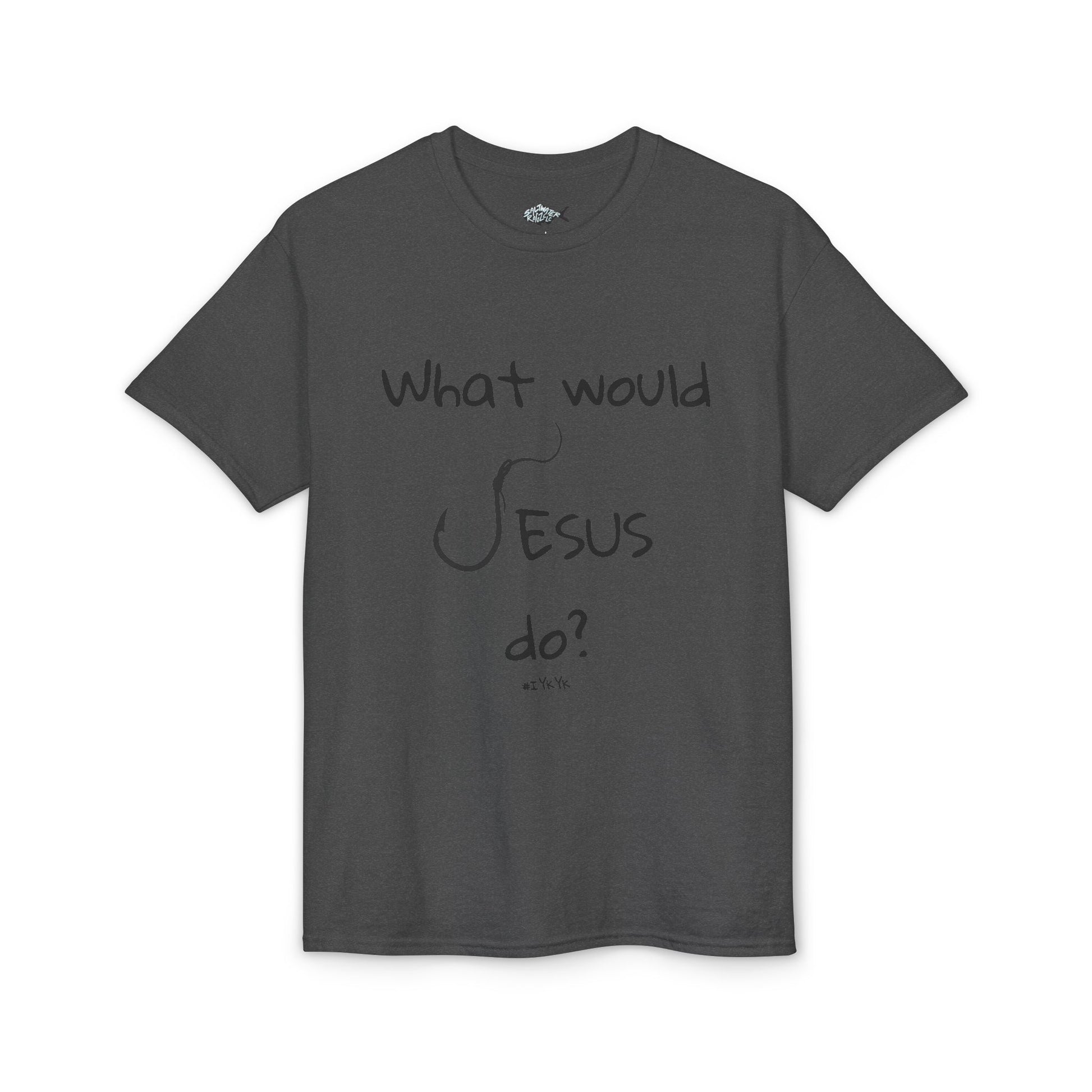 Soft, breathable tee that carries a quiet message: a handwritten-style front reading “What would Jesus do?” and a bold, vertical cross composed of distressed type across the back. This shirt wears like an everyday reminder—simple, sincere, and easy to layer. The fabric feels light and moves with you, while the print keeps its character wash after wash. Wear it to small group gatherings, volunteer shifts, or just when you want a subtle faith-centered statement that invites conversation without shouting.