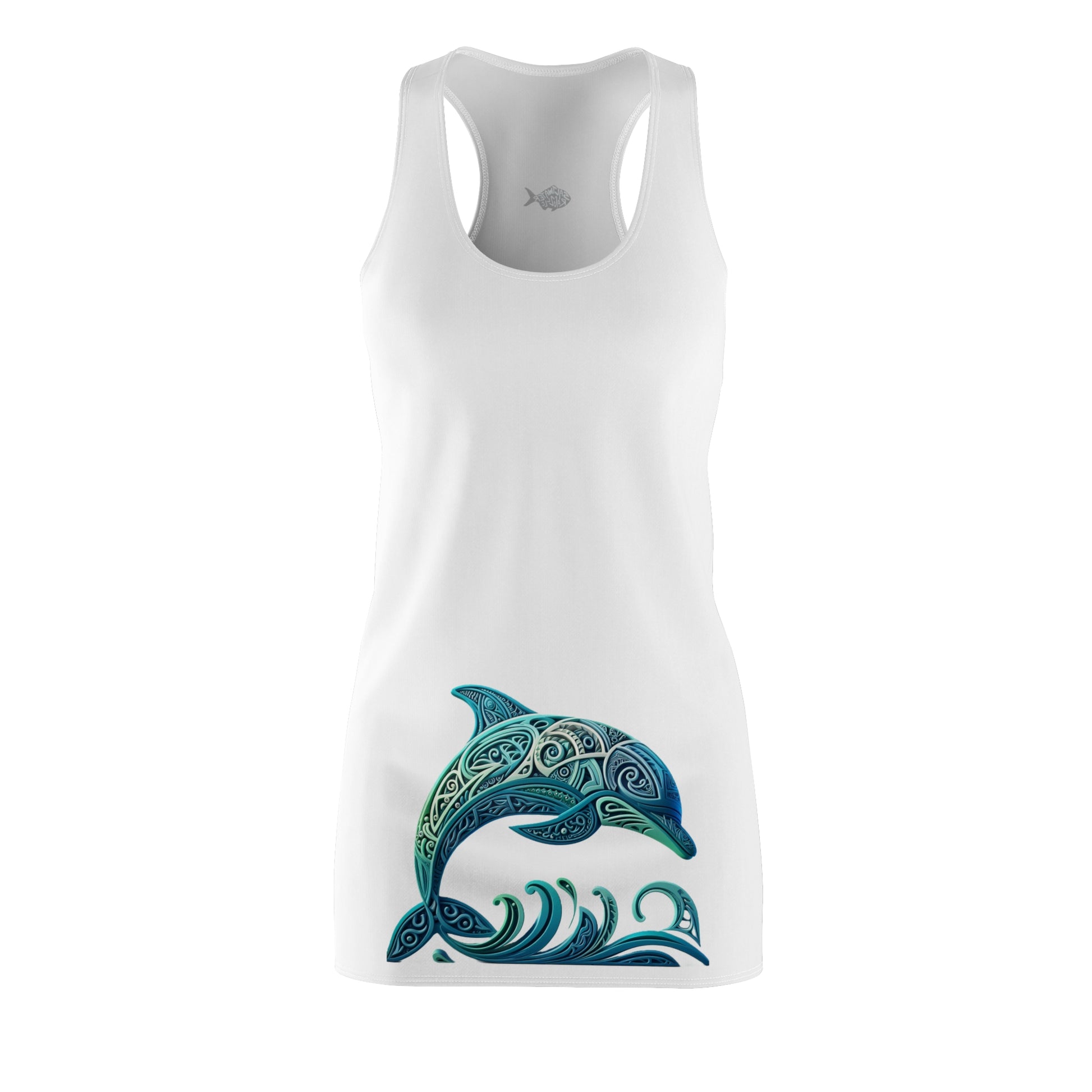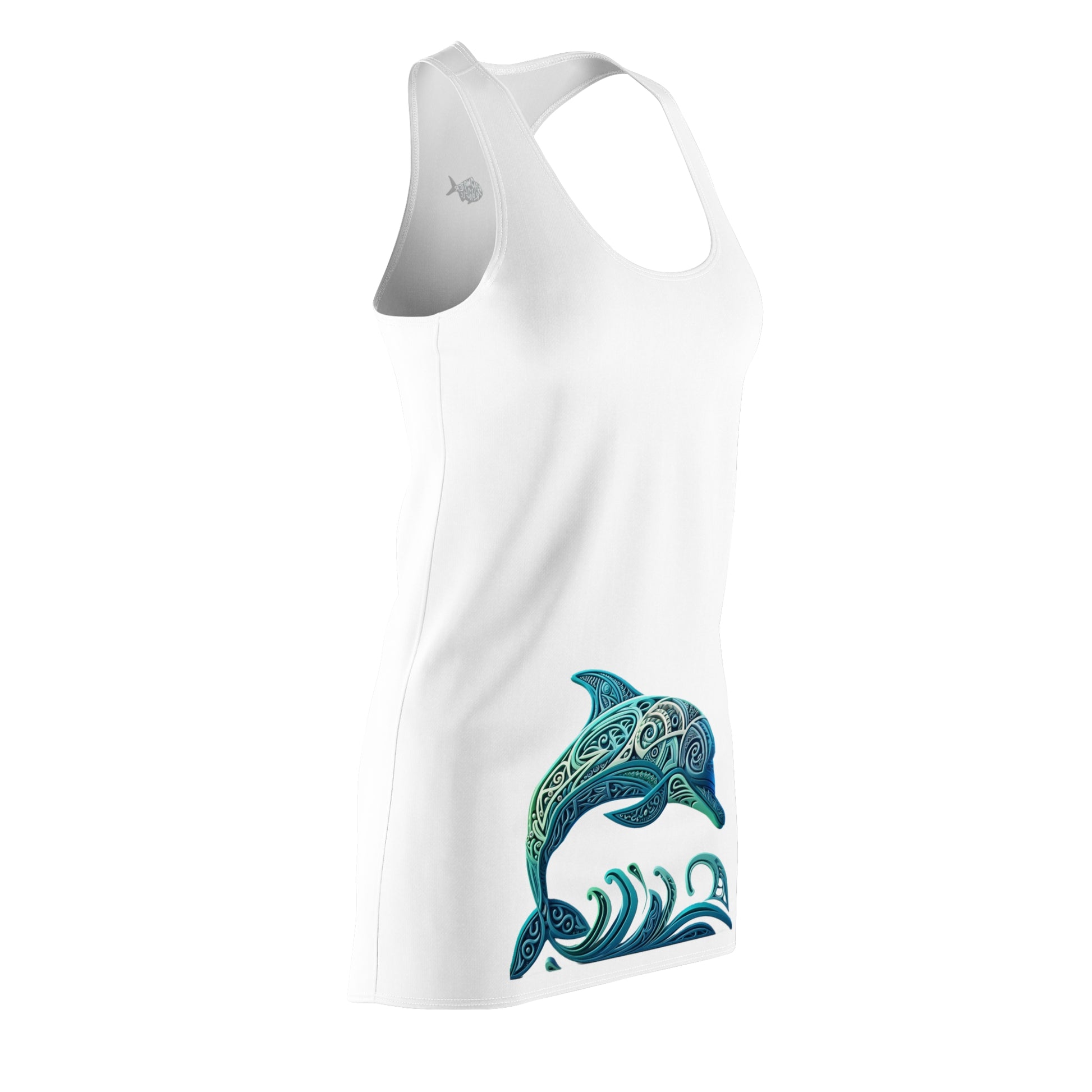Whimsical Dolphin Design Racerback Dress for Women - Perfect for Beach Days & Summer Celebrations